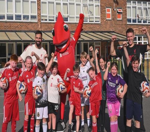 雷速体育10月10日宣 近日,利物浦球队的两名守门员马马尔达什维利和伍德曼与俱乐部吉祥物Mighty Red一同参与了柯比圣劳伦斯小学参加课后足球活动的孩子们的训练。该活动是英
