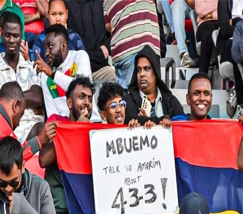非洲球迷在看台打标语:姆伯莫,跟阿莫林聊聊433吧